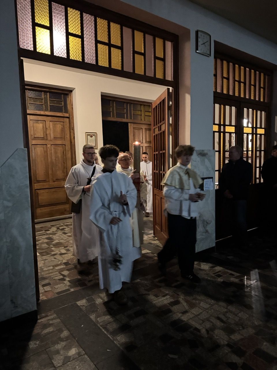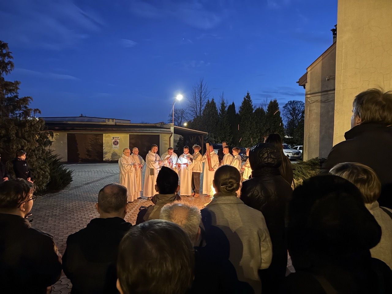 od poniedziałku do piątku:po Mszy Świętej o godzinie 18:00 (około godziny 18:30, w dni z nabożeństwem około godziny 18:45)